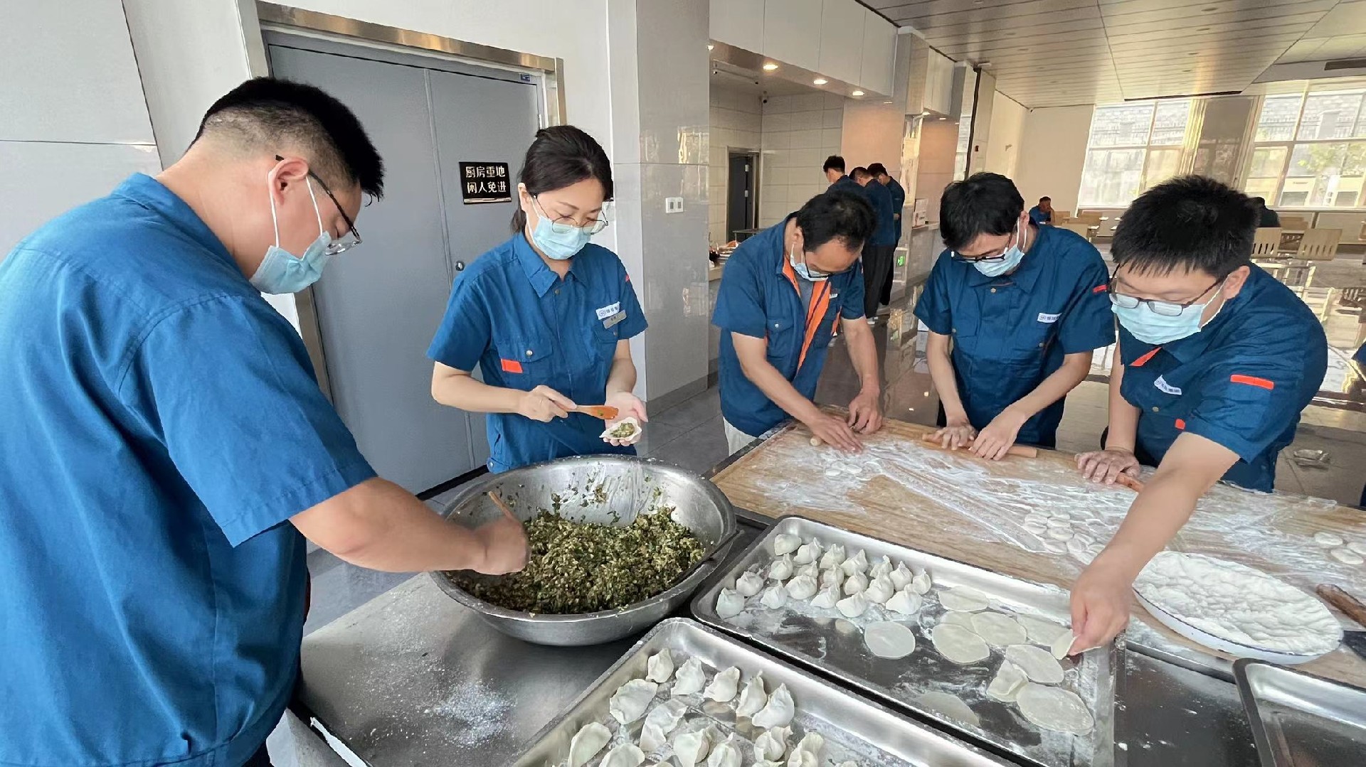 晚上,企業(yè)管理中心為導師及新員工們準備了豐盛的歡迎冷餐會,按照膠東的習俗,每逢大事吃團圓餃子,大家一起和面,一起拌餡,一起動手包水餃。師傅們紛紛對徒弟表示:“吃了水餃,咱們就是一家人了,好好干?!睅煾低降芎凸绢I導相對而坐,開懷暢飲,暢所欲言,自己包的餃子格外的香。