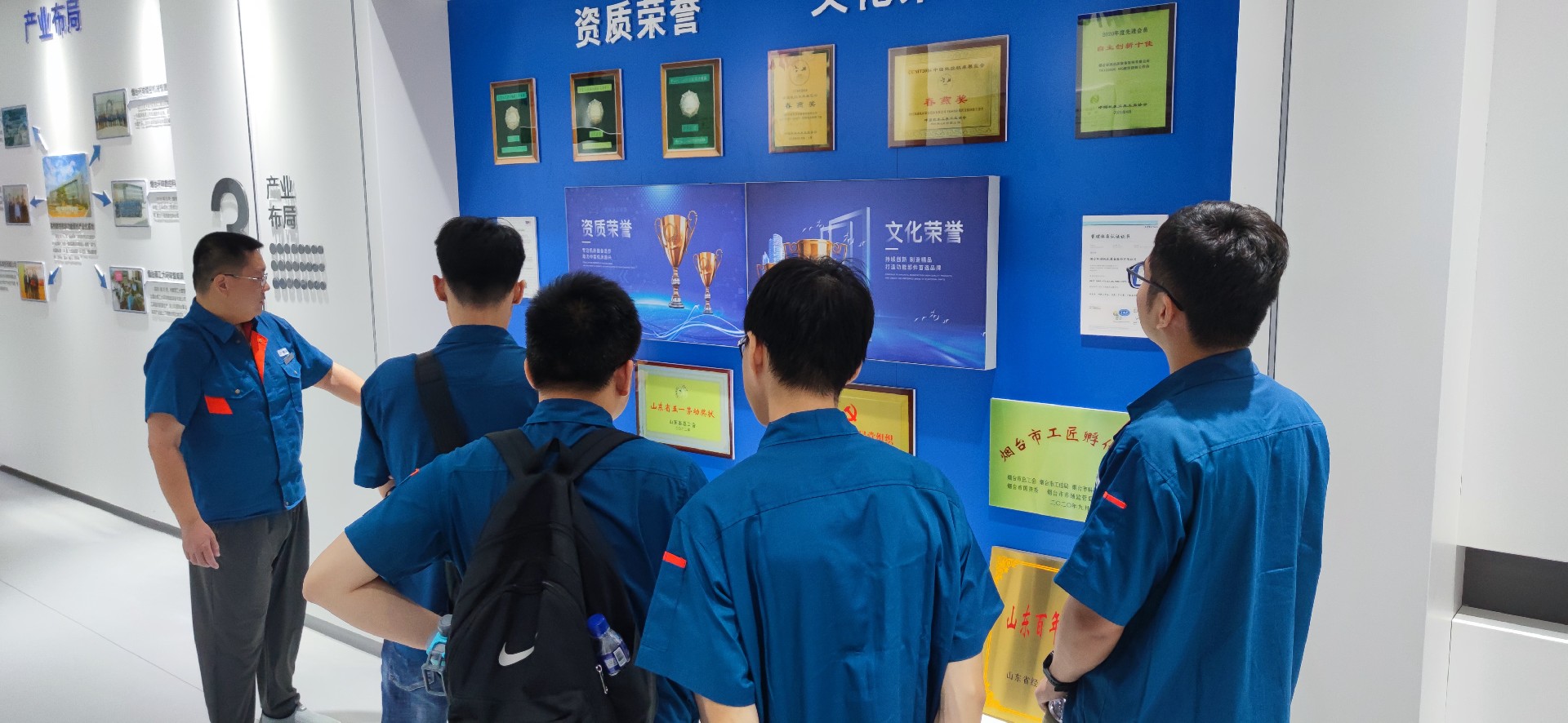 在入職培訓中,公司副總經理、總工程師景國豐向新入職技術員工詳細介紹了公司產品和技術發(fā)展情況,對技術崗位的職業(yè)發(fā)展前景進行了概括并對新員工提出了崗位要求與期待,勉勵大家能夠秉持“不登高山,不知天之高也;不臨深溪,不知地之厚也”的精神,成為一名深入一線,事必躬行的技術人才。企業(yè)管理中心副主任王德祥、人事專員崔巖輝分別為新員工們講解了公司的企業(yè)文化、人力資源制度及人才補貼政策,王主任帶領大家參觀了廠區(qū)及多媒體展廳,并向新員工詳細介紹了企業(yè)發(fā)展歷程及獲得的榮譽,大家對公司悠久的發(fā)展歷史感觸頗深,紛紛表示非常榮幸能剛畢業(yè)就應聘進入這樣一家有底蘊的公司,希望未來的自己也能登上公司的榮譽榜,在企業(yè)的發(fā)展中留下自己的光輝痕跡。